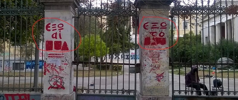 Ακόμα και τα ιστορικά συνθήματα, όπως το «Εξω το ΝΑΤΟ», έσβησαν από την πύλη του Πολυτεχνείου, αποκαλύπτοντας ακόμα περισσότερο το πραγματικό τους πρόσωπο.